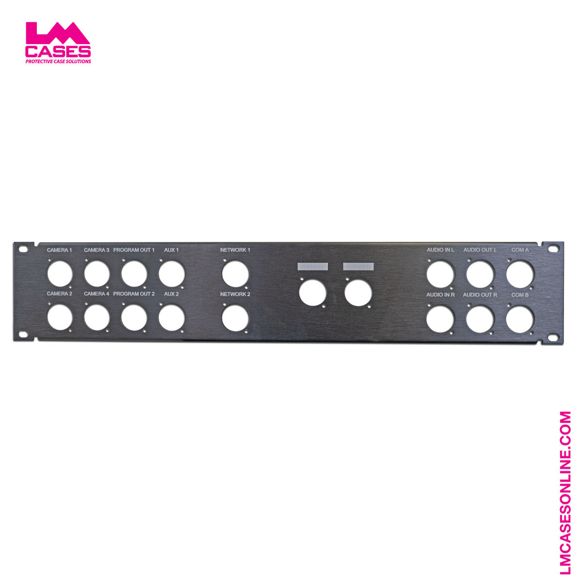 This is the standard panel we use in our flypacks. The panel features basic labels for 4 cameras, program feeds, and simple audio. Connectors and custom cables can be purchased via the below links.