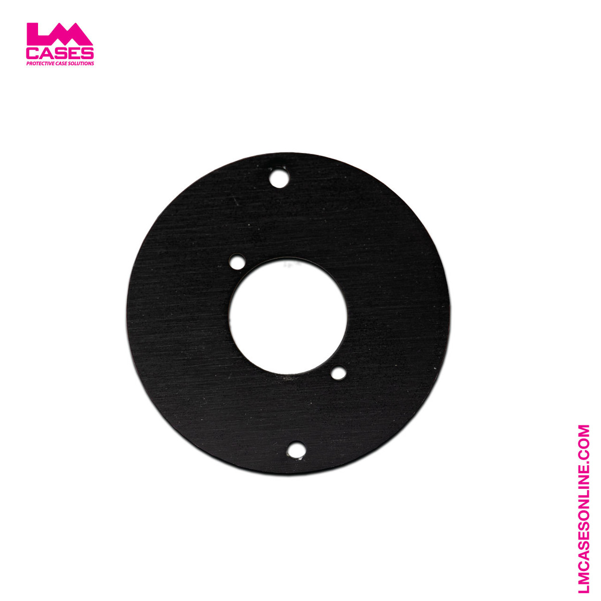 This adapter plate is designed to allow LM Tour Systems power boxes with 5278C inlets to be changed to a Powercon or other D-Series connector. The adapter plate can be used creatively with different boxes and panels to accept a variety of connectors outside of the standard power realm.
