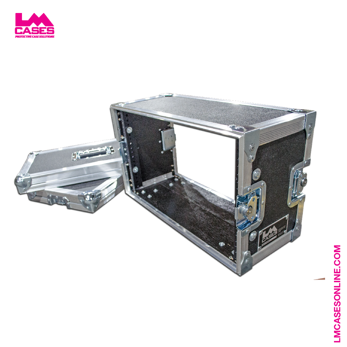 This rack is designed to hold shallow equipment such as rack-mounted broadcast preview monitors and battery chargers. The rack features front rail that is recessed ½” from the lid split. Pre-tapped 10/32” rack rail is provided for easy installation. 1 lid mounted recessed handle is provided for transport.