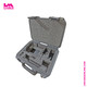This custom case is designed for the Applied Microphone Technology (AMT) Q7-LS True Diversity Wireless Bell Mount Saxophone System. The custom CNC cut PE foam insert is designed to hold each individual system component in its own compartment. The receiver compartment accommodates the antenna connectors with an accessory compartment below. The microphone compartment accommodates the mic, stem and clap. The belt pack transmitter compartment accommodates the pack and its flexible antenna. A separate power supply compartment and a custom compartment designed for 8 AA batteries are also provided.