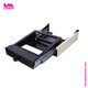 This sliding shelf is designed to hold 3 Sony RCP1500 camera controllers in a rack mount format. The shelf features a multi-position locking latch system that allows the shelf to be extended and locked into 14 positions of extension by pulling the front T handle. The shelf also features a padded palm rest at the front below the controllers. The shelf requires mounting to the front and rear rack rails of a rack case. The minimum rail to rail depth is 20”.