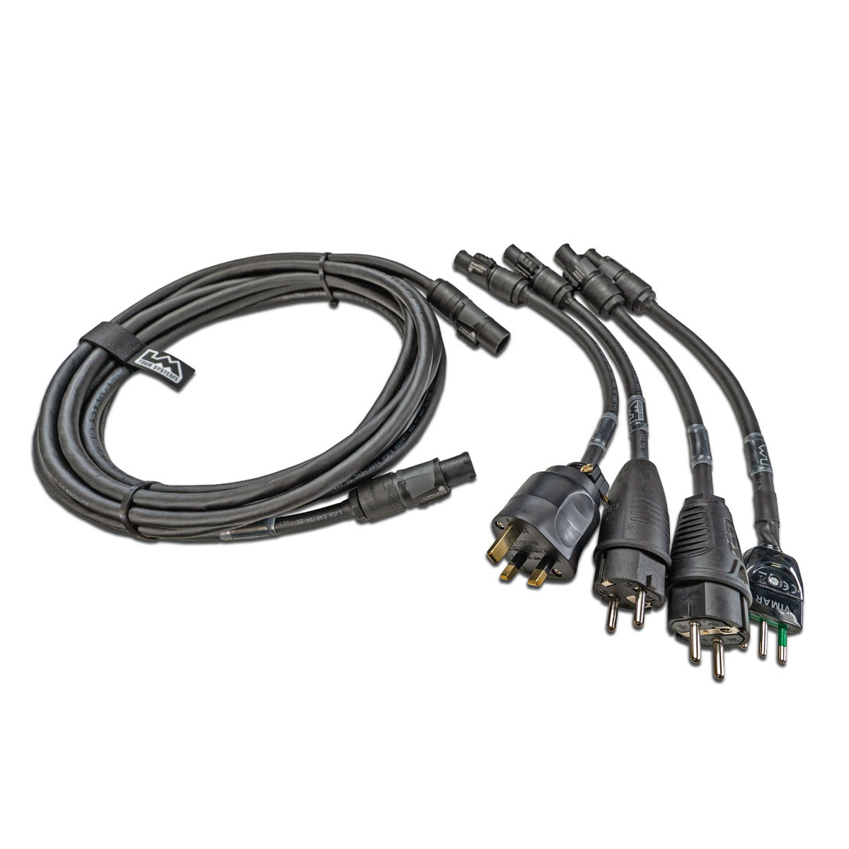 The LM Tour Systems Euro Cable Adapter Set is intended for customers who are touring through Europe. The set includes a 25ft LM Tour Systems True1 – True1 Link cable and 4 – 1.5’ adapter cables terminated with E, F, G and L connectors. This set can be stored with systems and deployed when needed. The multiple plug ends can be quickly connected to power your system. This cable set is a perfect companion to LM Tour Systems DSK-I and DSK-IT boxes.